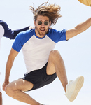 100% cotton. Cotton/Lycra® contrast ribbed collar. Contrast raglan sleeves. Twin needle stitching. Cut out label.